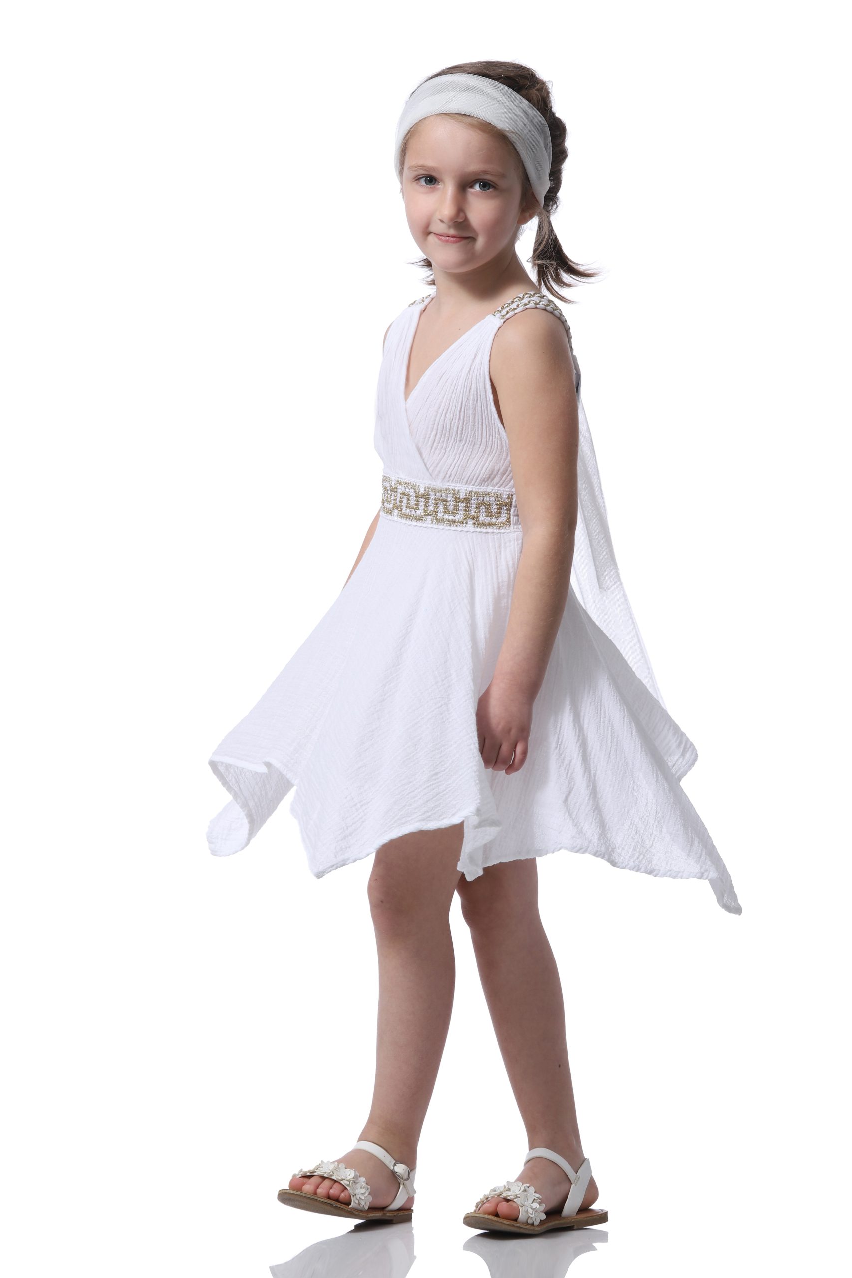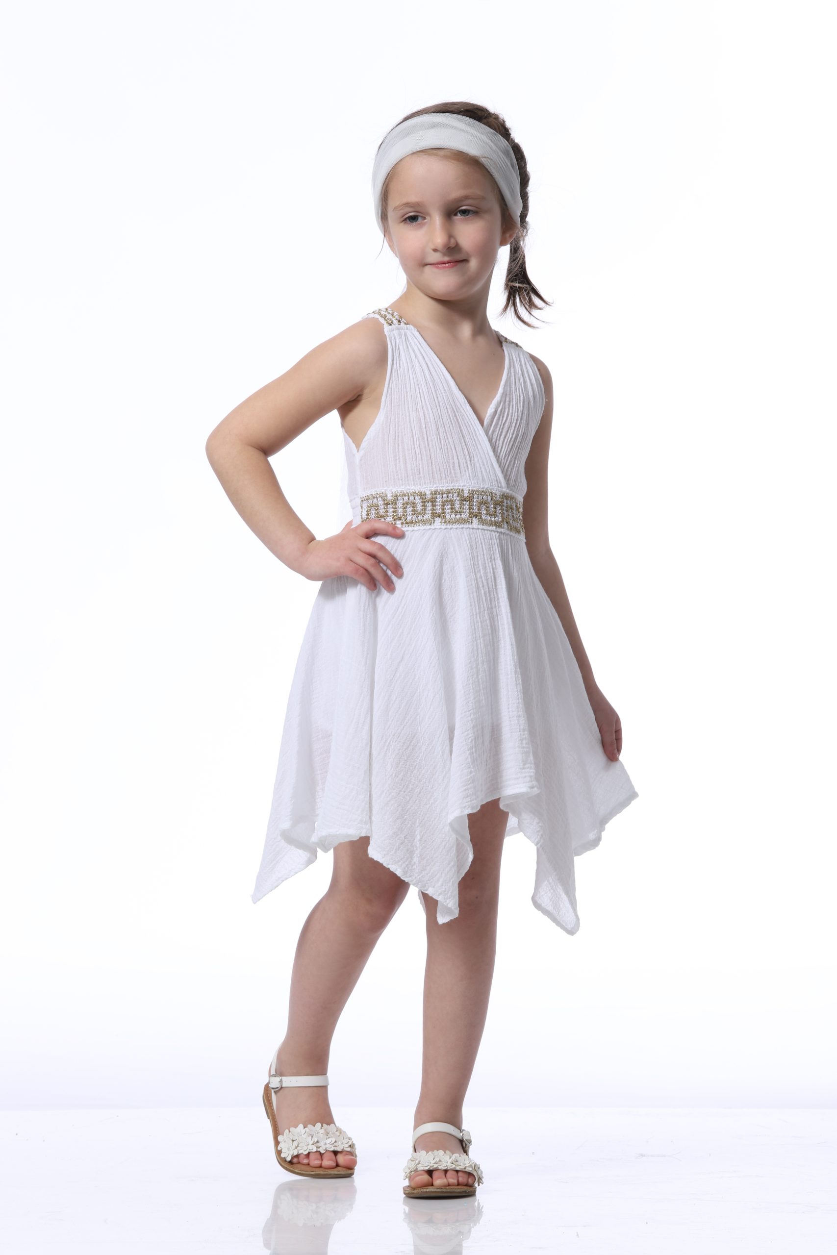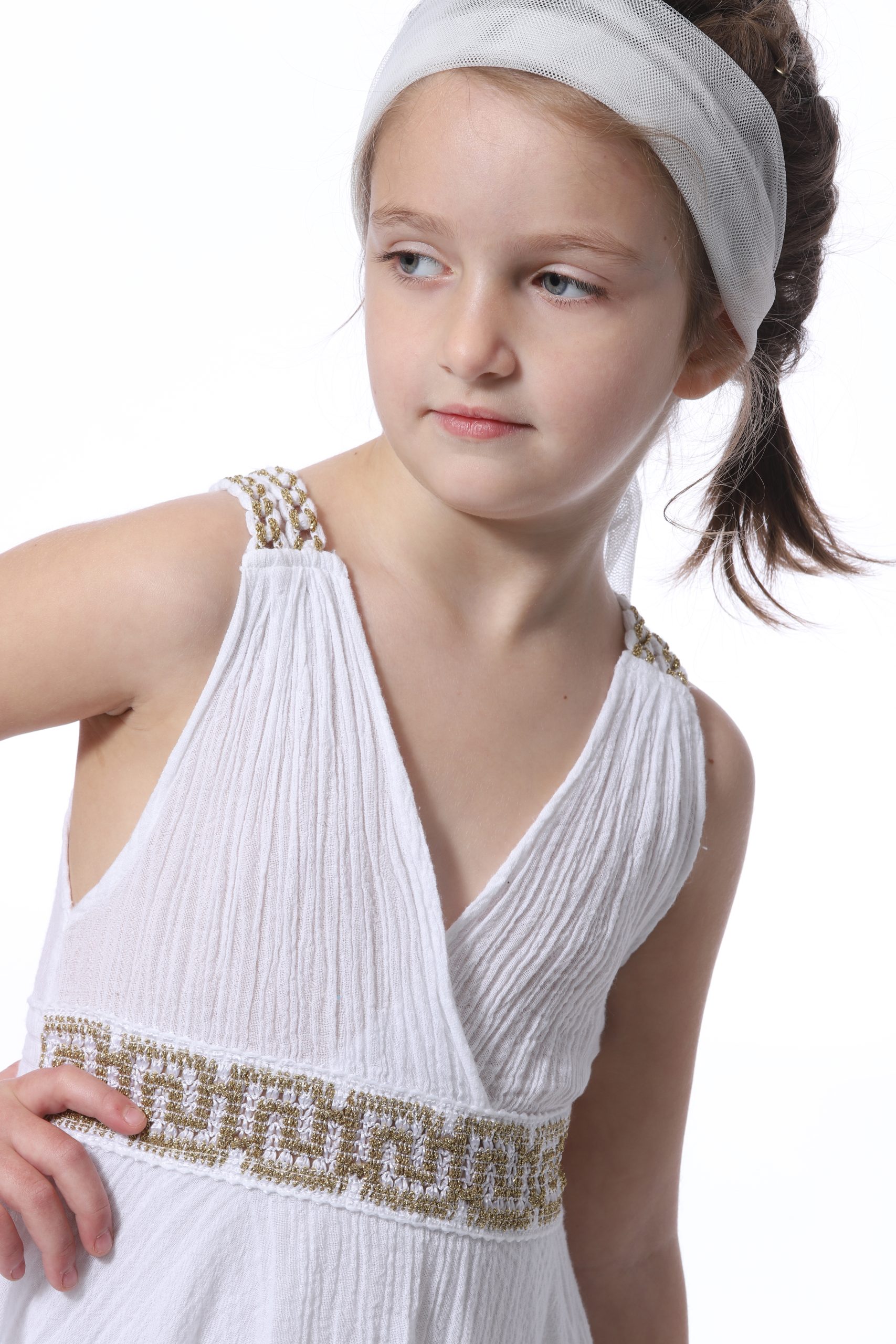 HANDMADE,LIGHT COTTON FABRIC,DEEP NECKLINE,GOLD ELASTIC LACE IN THE MIDDLE,PERFECT DRESS FOR YOUR LITTLE PRINCESS,MADE IN GREECE