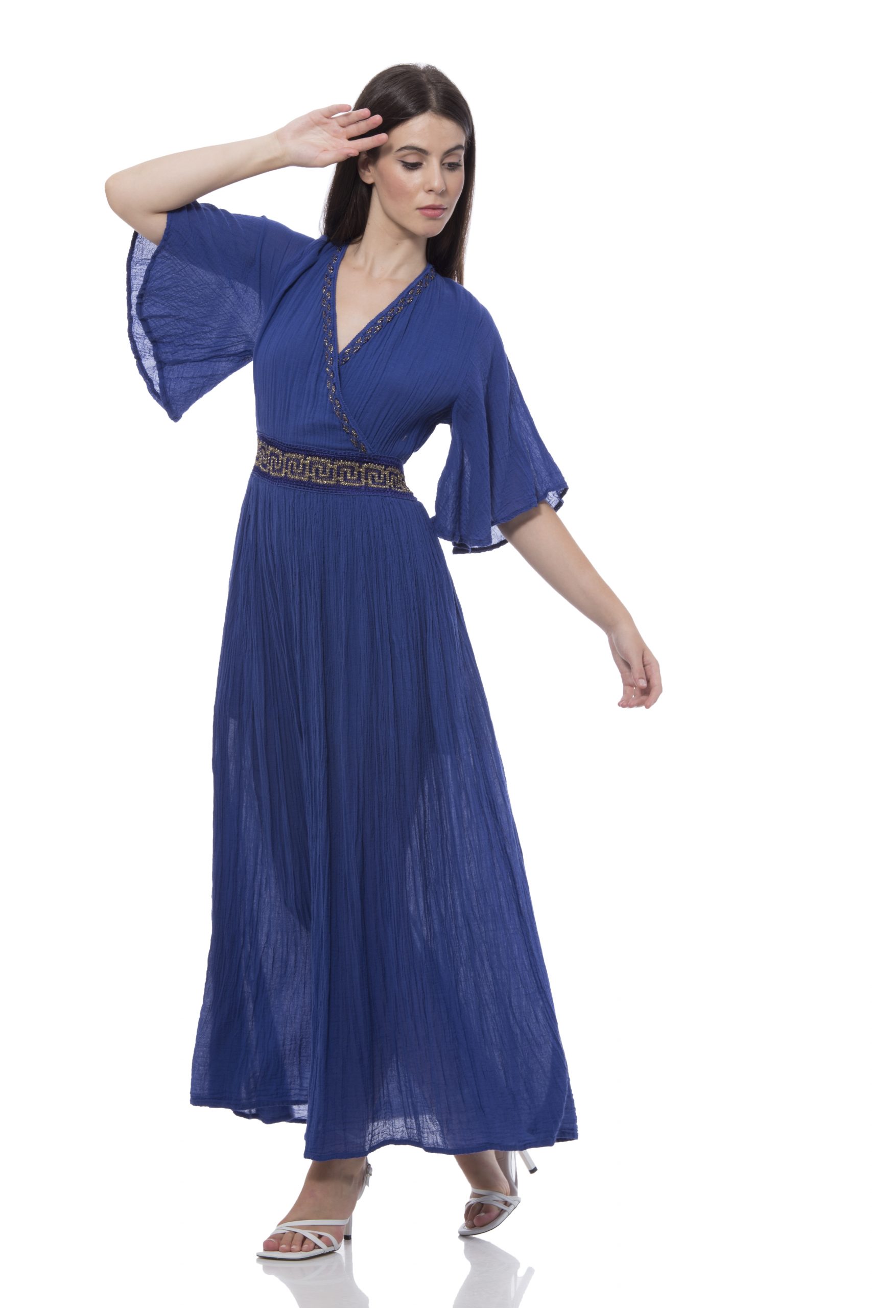 HANDMADE,COTTON,ONE SIZE,DEEP NECKLINE,WIDE SLEEVES,INSPIRED FROM ANCIENT GREECE,MAXI DRESS PERFECT FOR SPECIAL OCCASIONS.