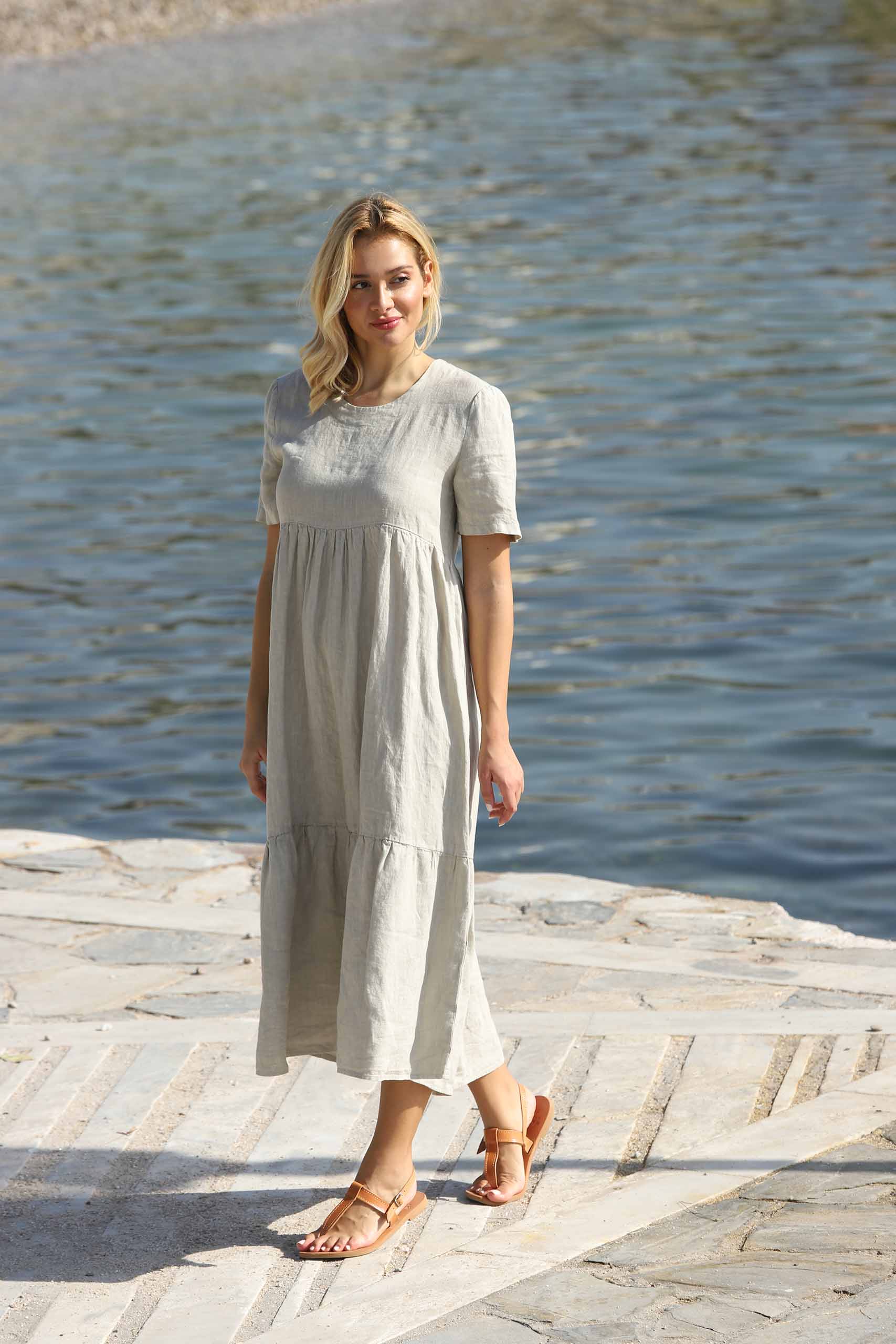 100% LINEN DRESS, SUPERIOR QUALITY, MADE IN GREECE, BOTH CASUAL AND ELEGANT, ITS VOLUMINOUS DETAILS OFFERS A SWAY IN MOTION