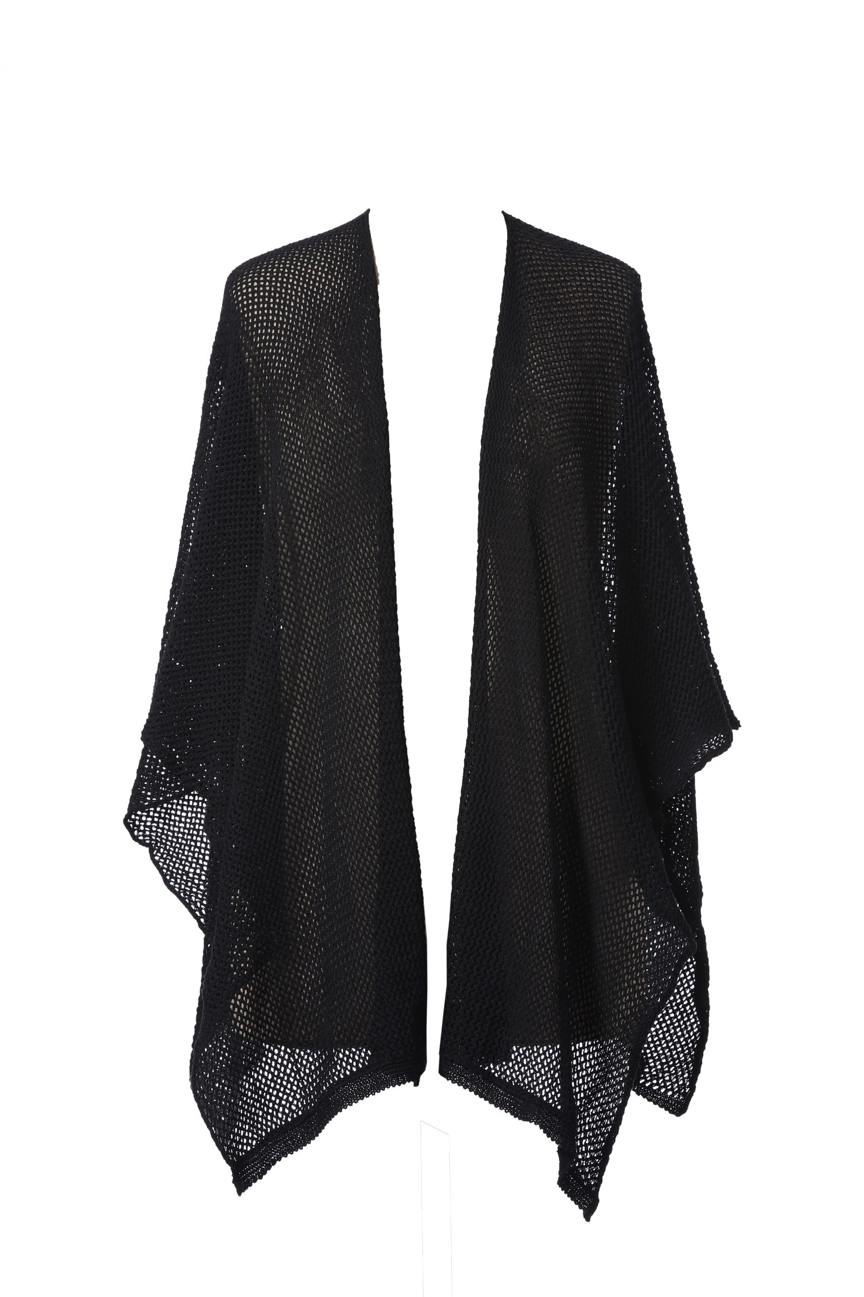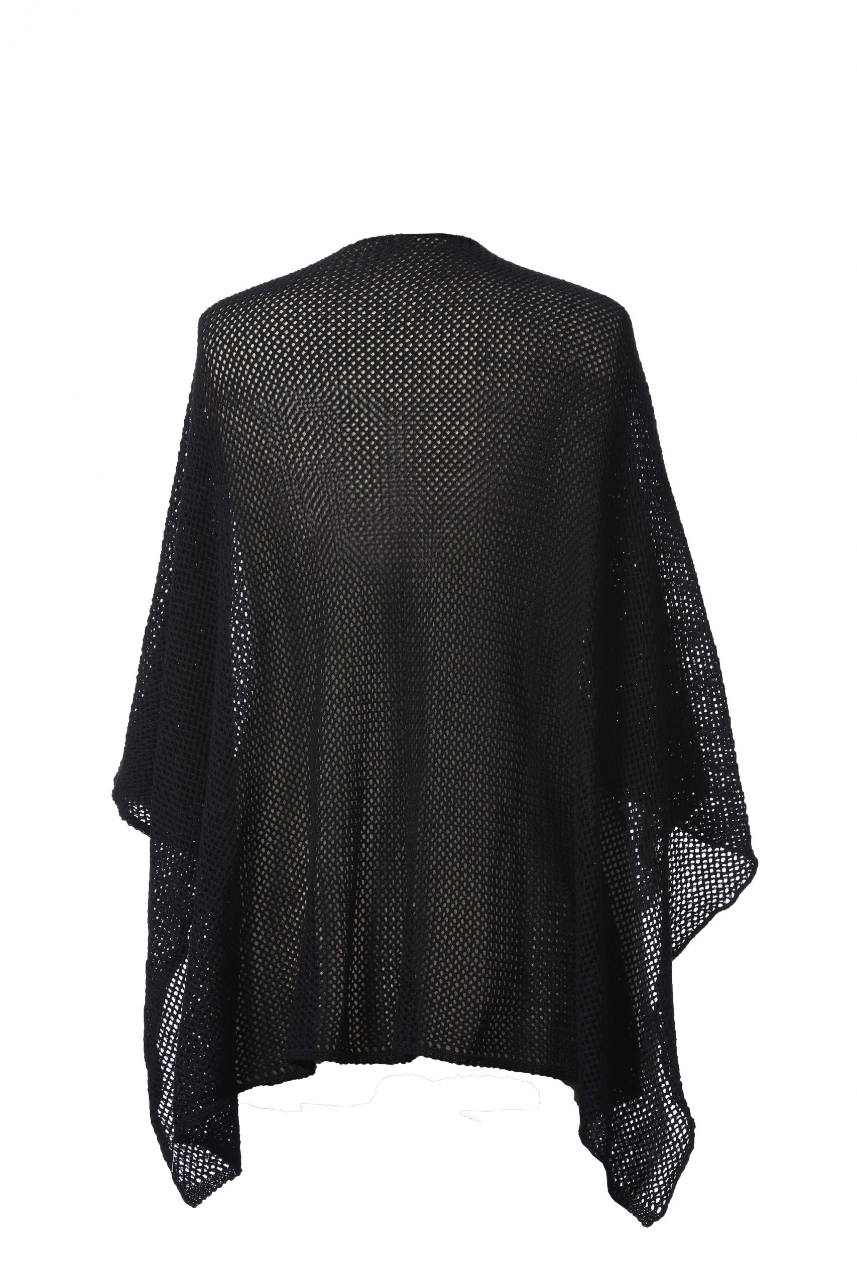 WOMEN S KNITTED COTTON PONCHO,BLACK COLOUR,MADE IN GREECE